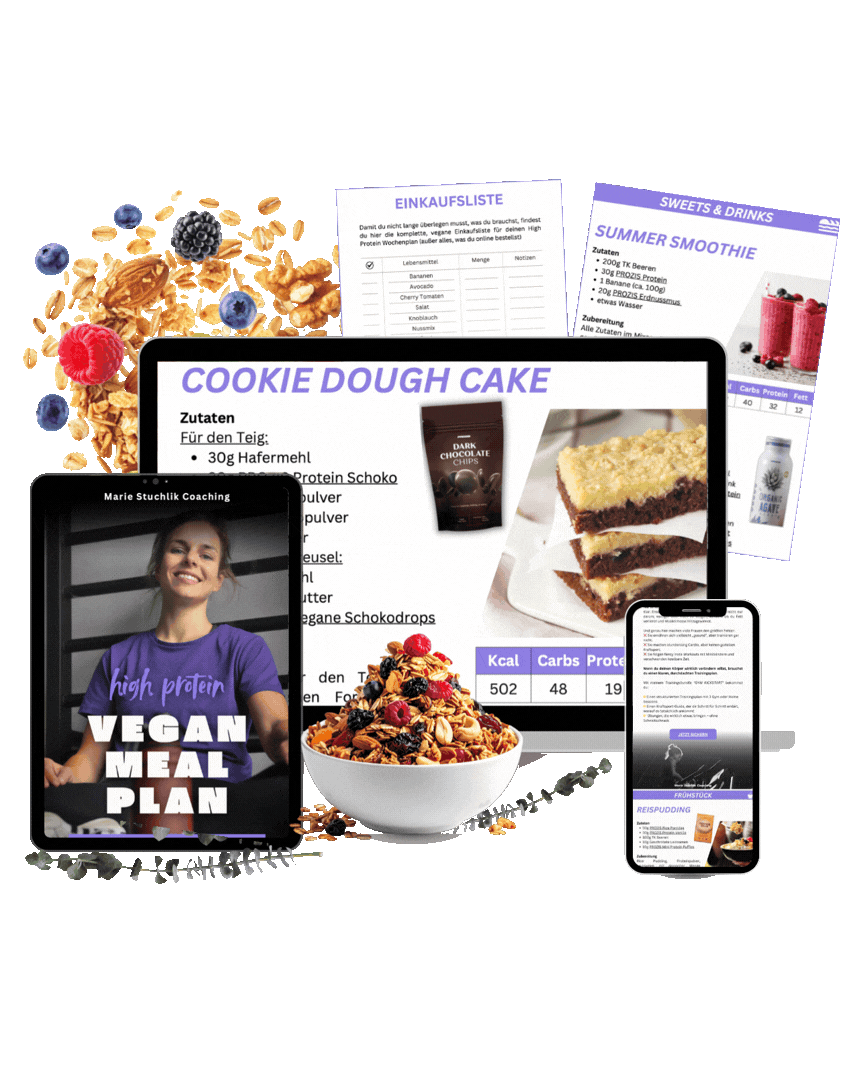 Hol dir meinen kostenlosenVegan High Protein Meal Plan und lerne, wie du pflanzlich isst und dabei locker auf dein Protein für Muskelaufbau, Performance und echte Sättigung kommst.